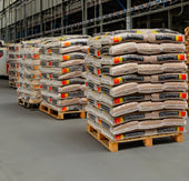 Capaciteit: Volle pallet: 66 zakken van 15 kg; Halve pallet: 33 zakken van 15 kg